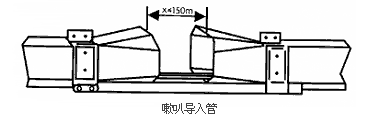 (2)分離補(bǔ)償法 原理:在環(huán)境溫差較大,運(yùn)行速度不高的情況下,可采用分離補(bǔ)償法。導(dǎo)管在接頭處分離一段距離作熱膨脹補(bǔ)償之用,導(dǎo)管分離處均套上嗽叭導(dǎo)入管,分離導(dǎo)管采取分別供電方式。