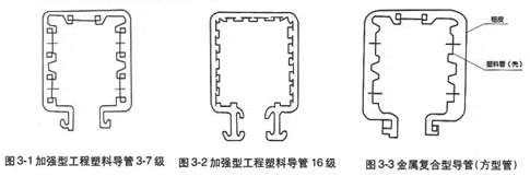 2、金屬復(fù)合型導(dǎo)管:是在加強(qiáng)型號(hào)管外加一層鋁合金復(fù)合外殼,以提高導(dǎo)管的耐溫及抗老化性能,適用于環(huán)境溫度-30度~+65度的室外及高溫車間等場所,其截面形狀如圖3-3 3、金屬性:金屬型導(dǎo)管采用鋁合金外殼并用絕緣保護(hù)材料制成,適用環(huán)境溫度為-40度~+80度的場合,其截面形狀如圖3-4。