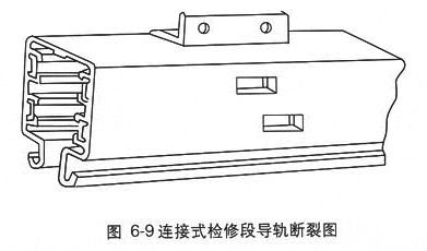 (六)型式 (1)連接式:在一條導(dǎo)管中,兩段導(dǎo)軌之間用絕緣材料隔開(圖6-9)